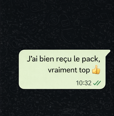 من بعد الشراء فـ WhatsApp، كنصيفطو ليك الرابط/الملفات مباشرة.